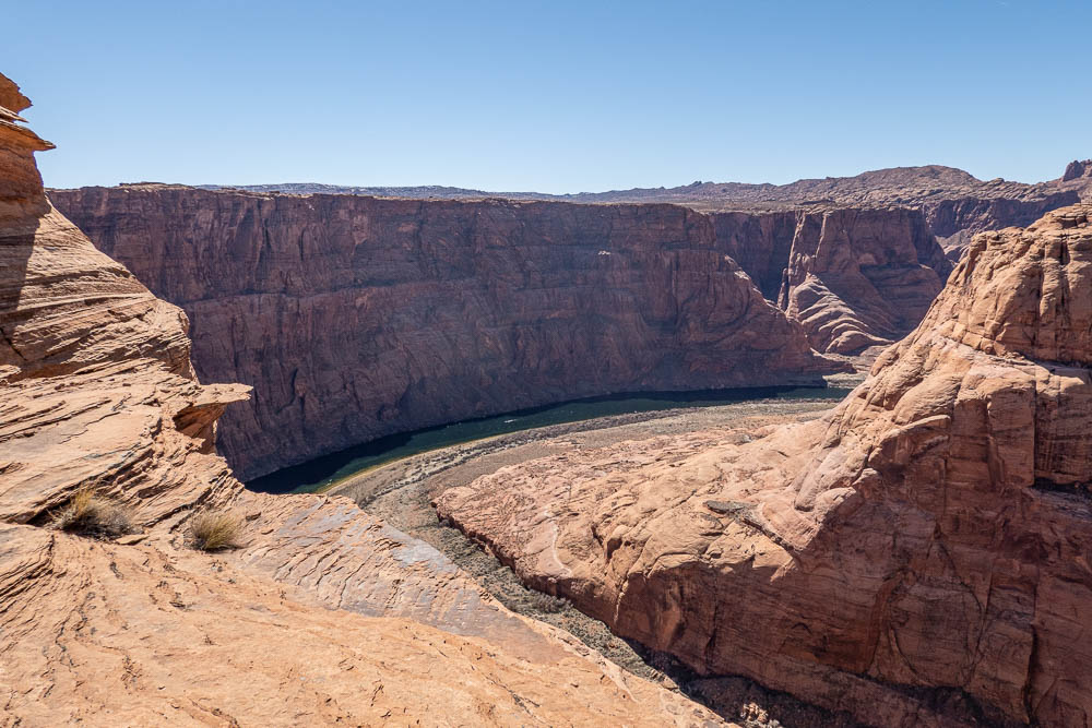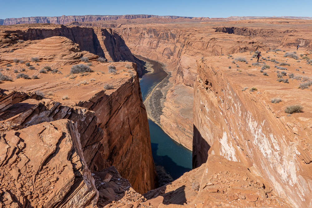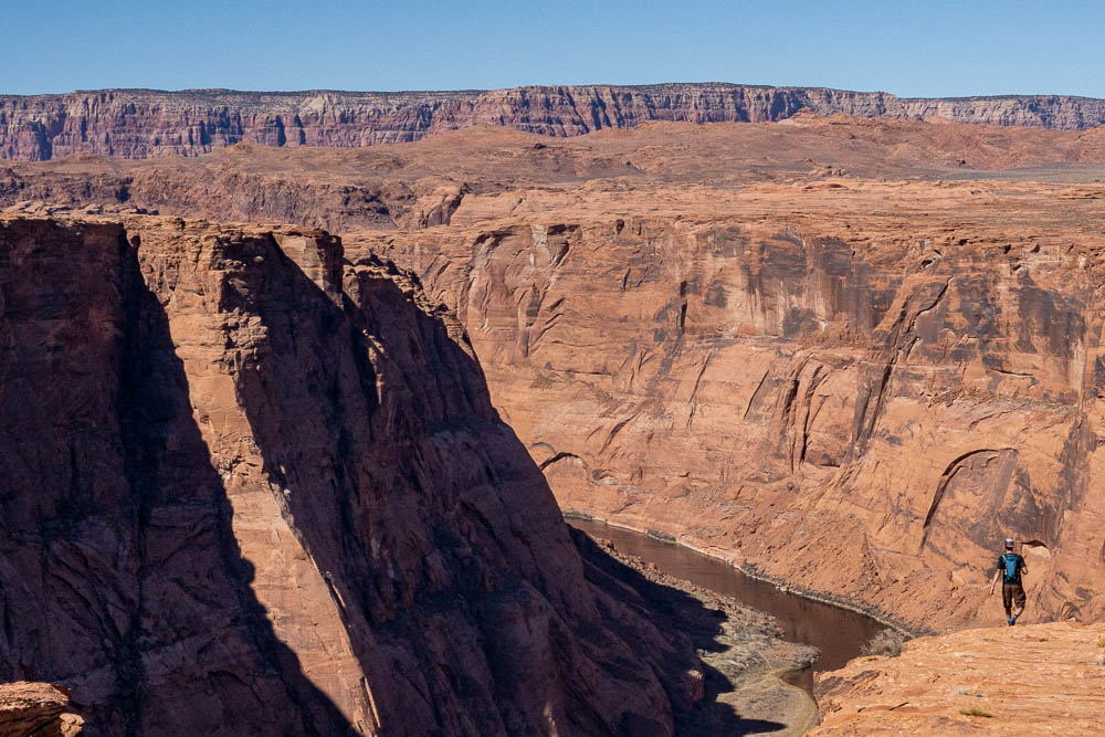 Quickly after leaving the aid station we were at Horseshoe Bend! Over to the right were the hordes of people at the main trail from the parking lot, but the course turns left along the rim, past a sign that says private property!