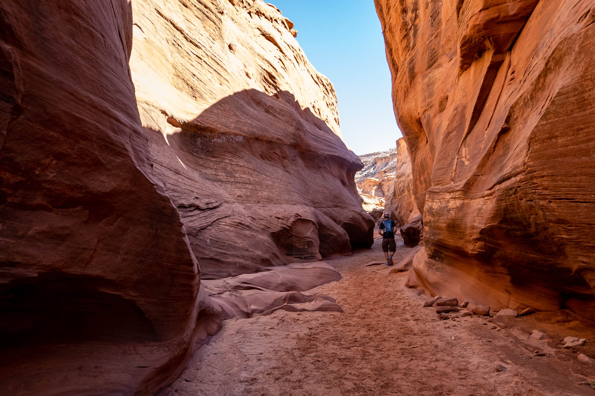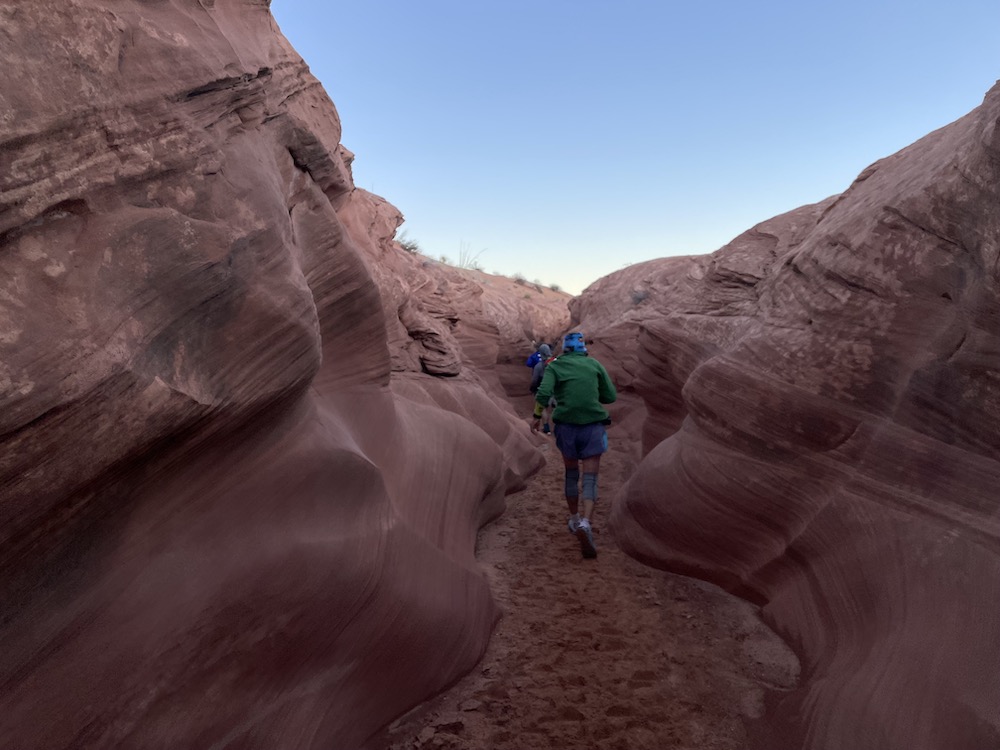 Since the canyons are so narrow, the race only goes through them one way. That many people trying to pass would become a traffic jam very quickly. So instead on the way back we go through another small slot canyon! Even if I hadn't stopped to take tons of pictures, I don't think this section would be very runnable.