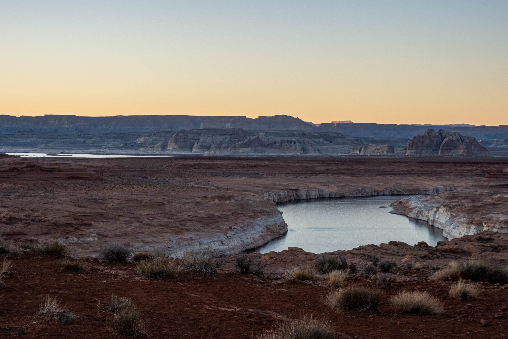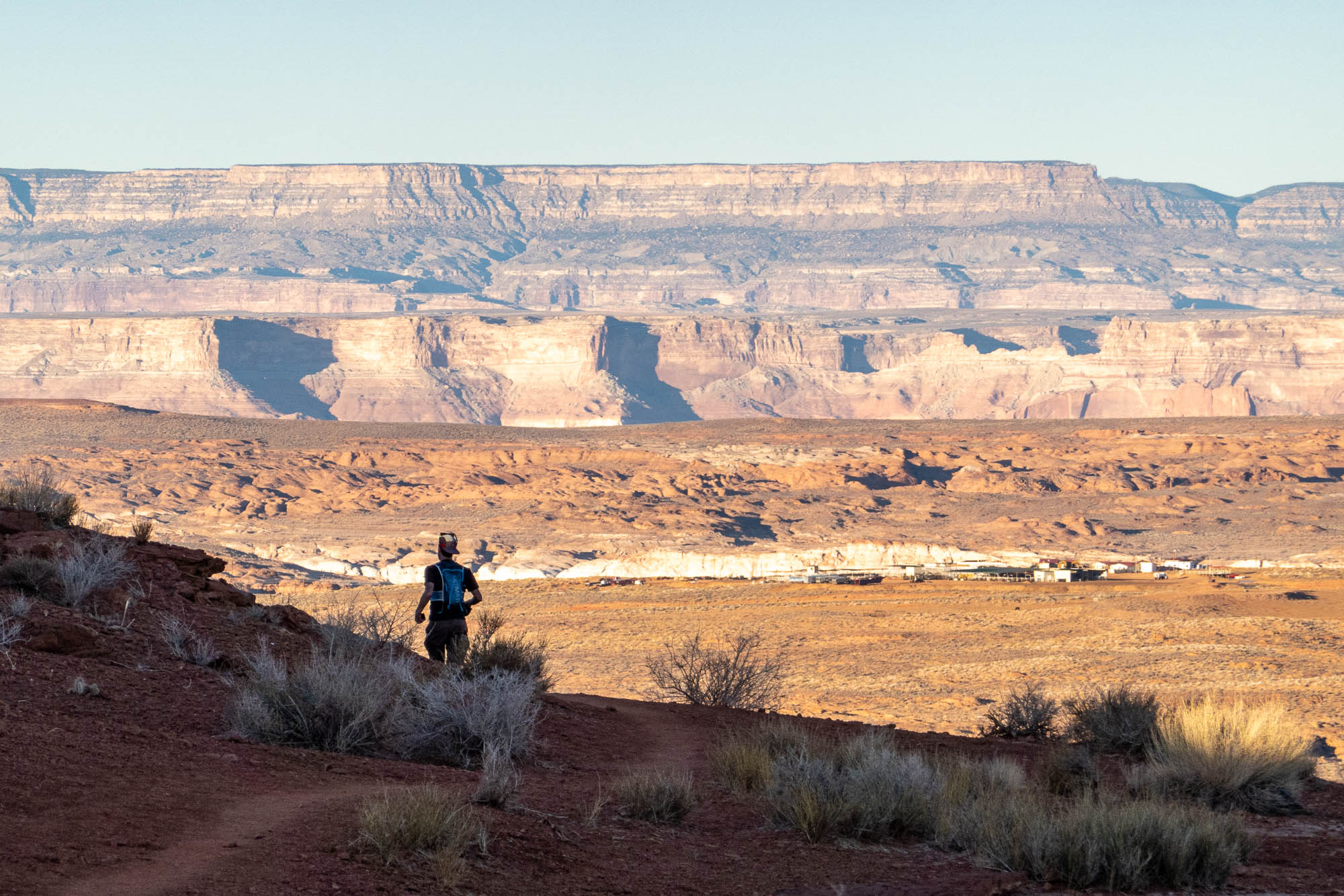 As the sun was setting, I got a glimpse of Lake Powell. I may be dragging, but at least the views kept on coming! That alone was good motivation to keep going, plus I only had 10 miles to go and still two and a half hours to do it. If I could maintain a 15 minute mile for the rest I'd be fine!