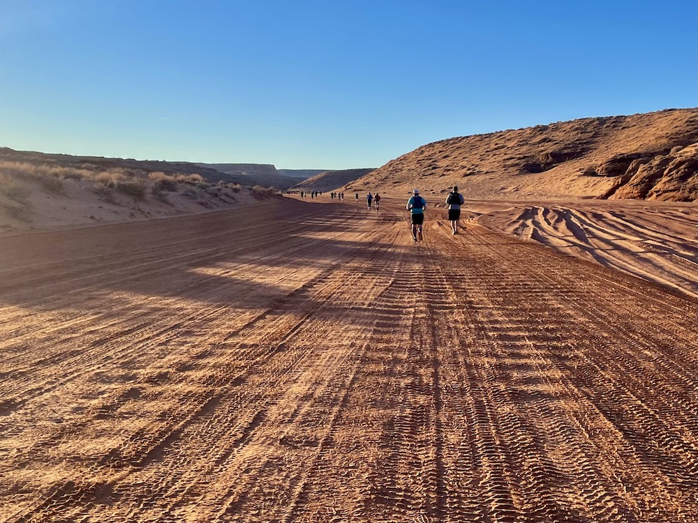 We quickly exited that canyon and were back into the wash we ran up earlier. As much as there are a lot of runners in the race, the crowds in the canyon are nothing compared to what I've heard it gets during the day. And as we were running back down the wash I could see all the tour groups coming in.